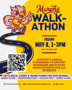 We are also looking for volunteers during the walkathon such as crossing guards. Sign up here: https://www.signupgenius.com/go/8050C4AADAC29A5FF2-63416259-murphy